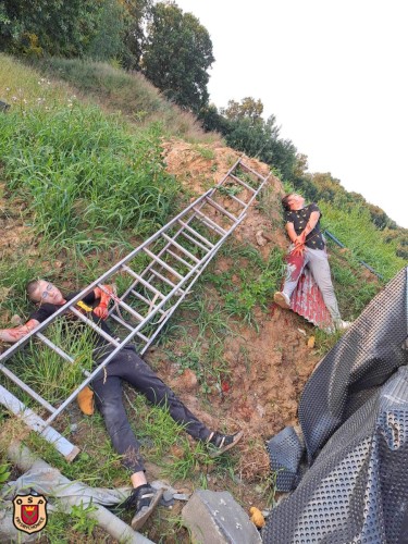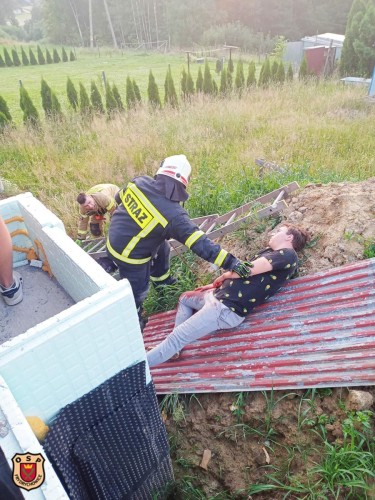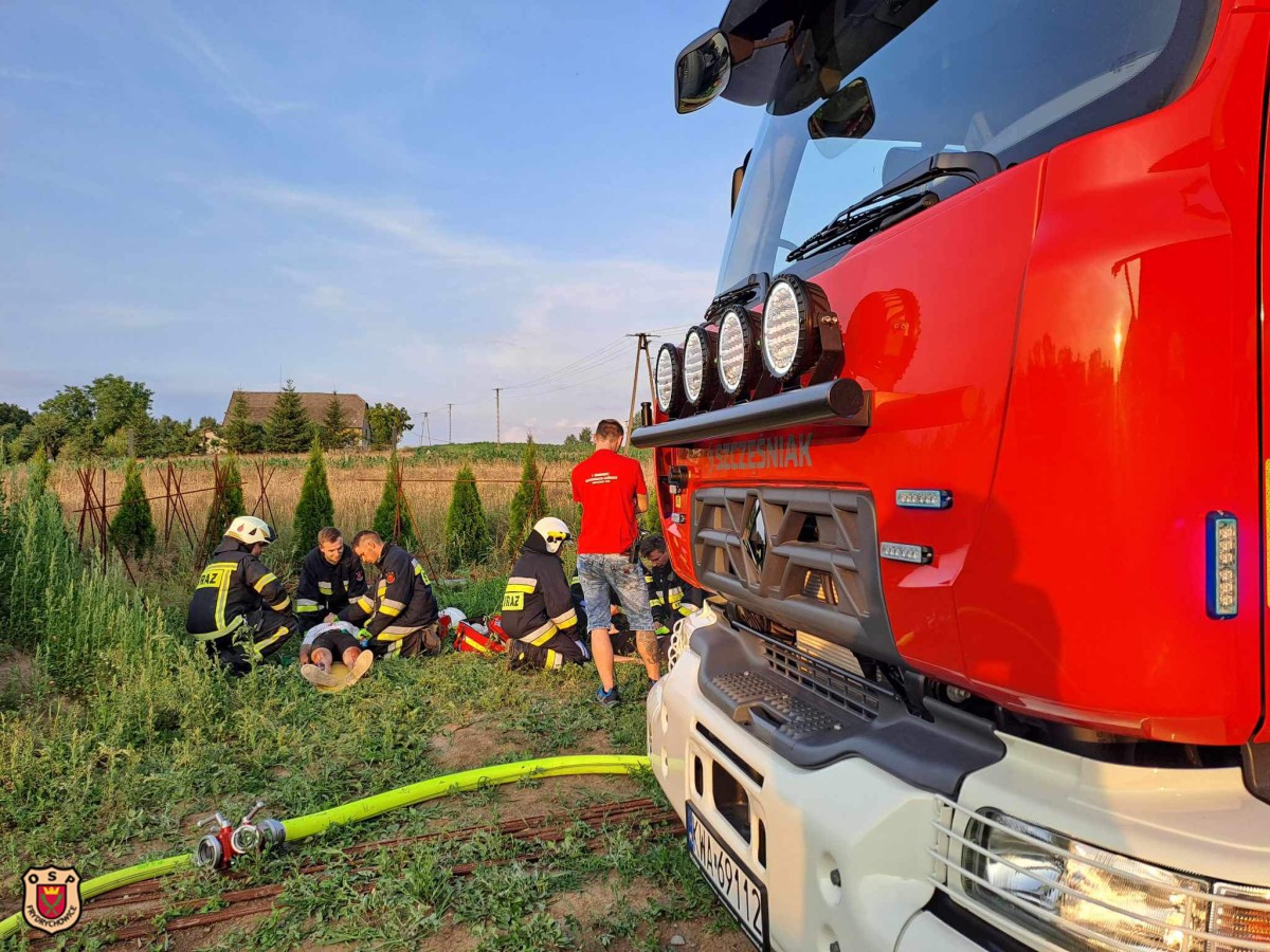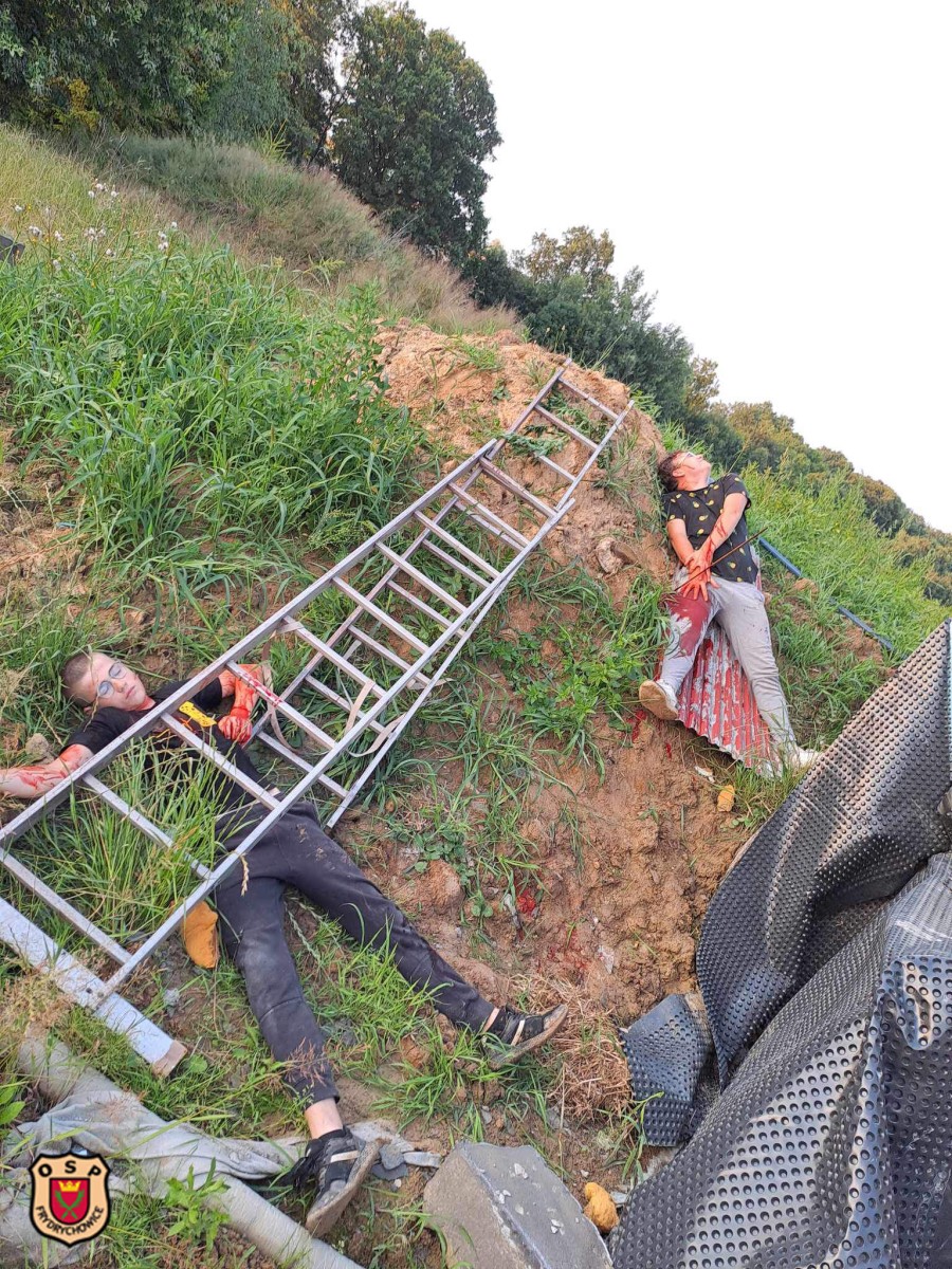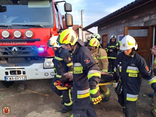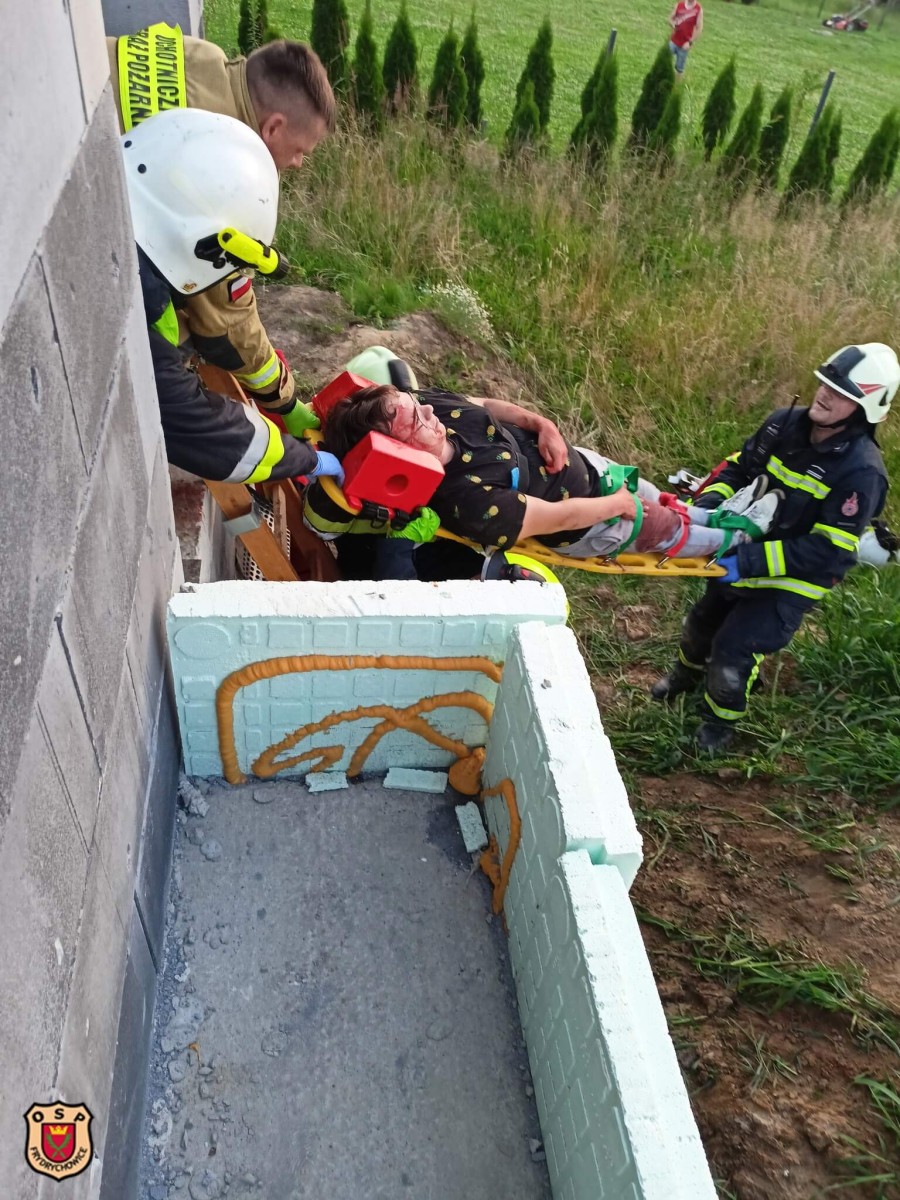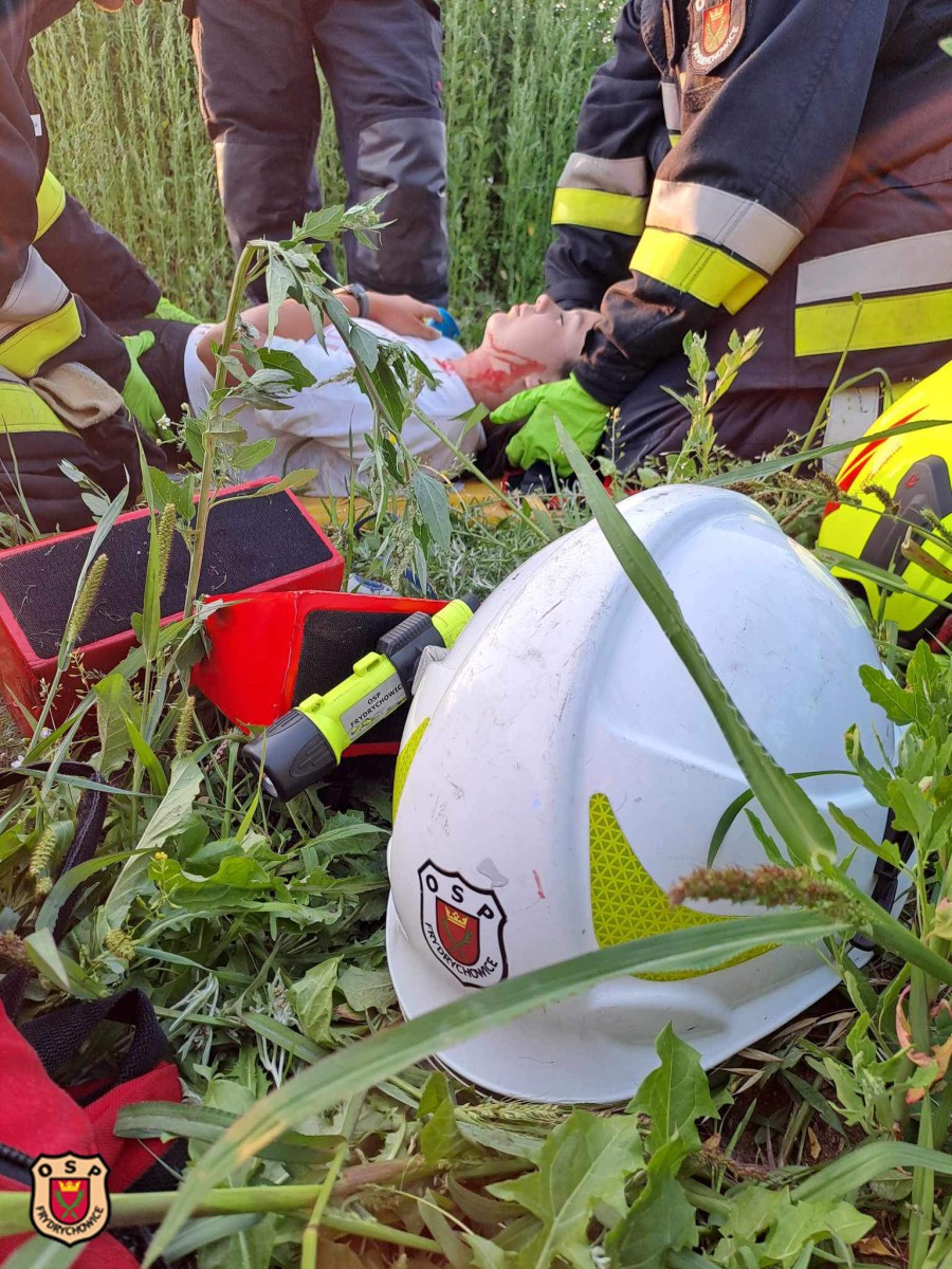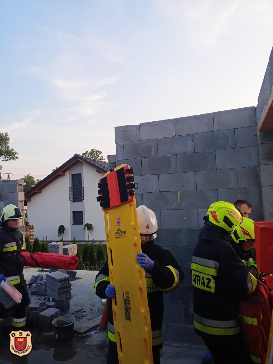 Podczas prac na budowie z drabiny spadł mężczyzna, który nadział się na wystający z ziemi metalowy pręt, druga osoba z urazem kończyny dolnej oraz po utracie przytomności znajdowała się pod drabiną. Zadaniem druhów było dotarcie do osób poszkodowanych, udzielenie kwalifikowanej pierwszej pomocy oraz ewakuacja w miejsce wyznaczone do przekazania LPR i ZRM.