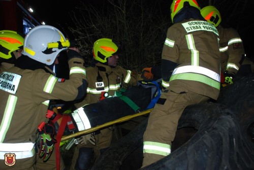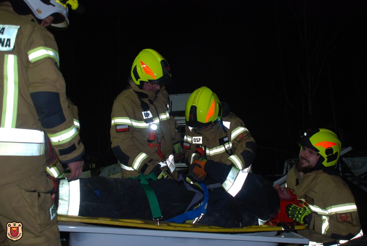Dachowanie samochodu osobowego w którym dwie osoby zostały poszkodowane, u jednej osoby przeprowadzono RKO.