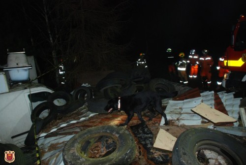 Zawalenie się budynku w wyniku wybuchu gazu, w środku osoba poszkodowana odnaleziona przy pomocy grupy poszukiwawczej z psami ratowniczymi