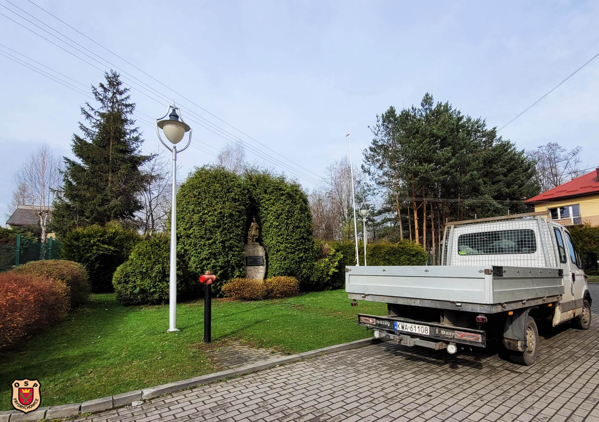 Pielęgnacja terenów wokół remizy / Wydarzenia / Przez admin-ncK7shrp Kończymy kolejny pracowity tydzień Dziś zajęliśmy się pielęgnacją terenu wokół naszej remizy a konkretnie przy figurce Ś.W. Floriana. Dzięki pomocy naszego druha Mateusza oraz pracowników jego firmy wszystkie drzewka i krzewy zostały przycięte.