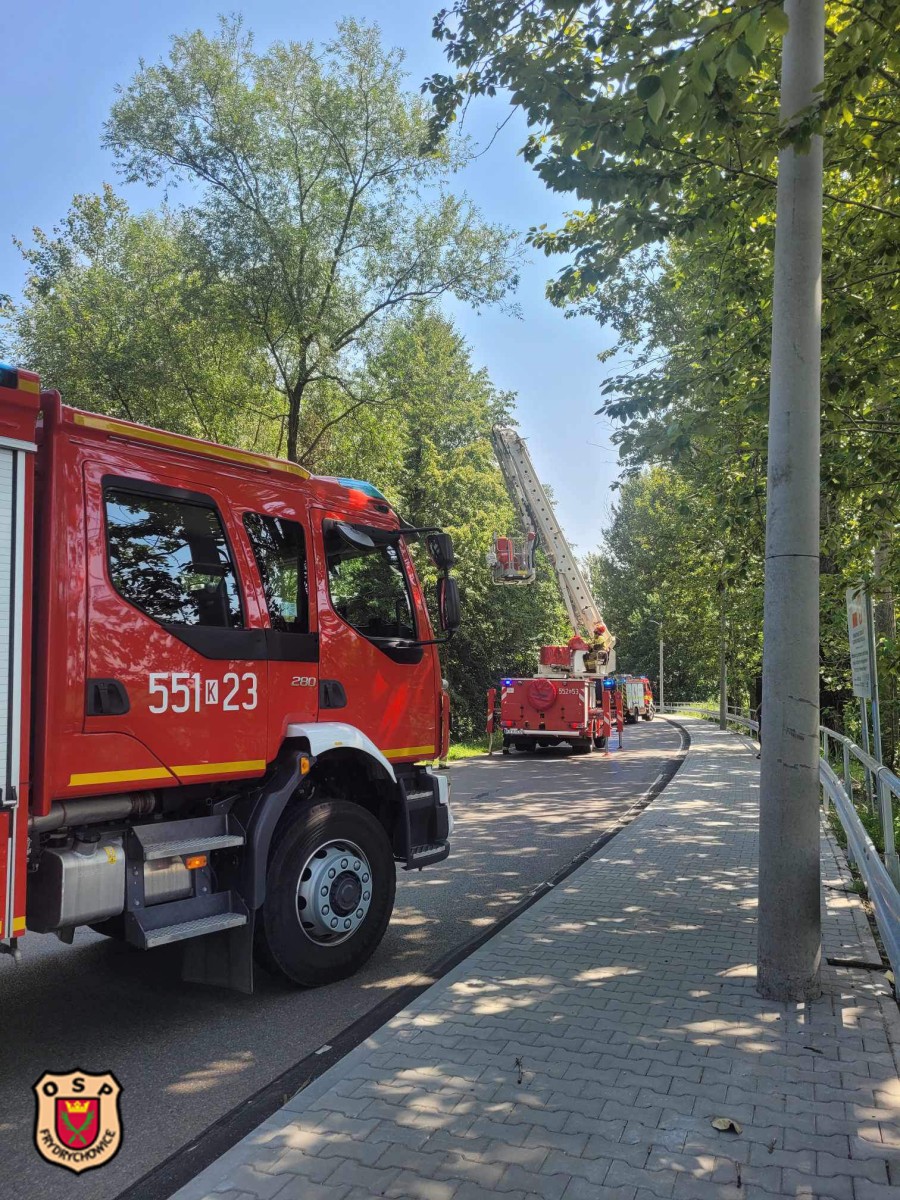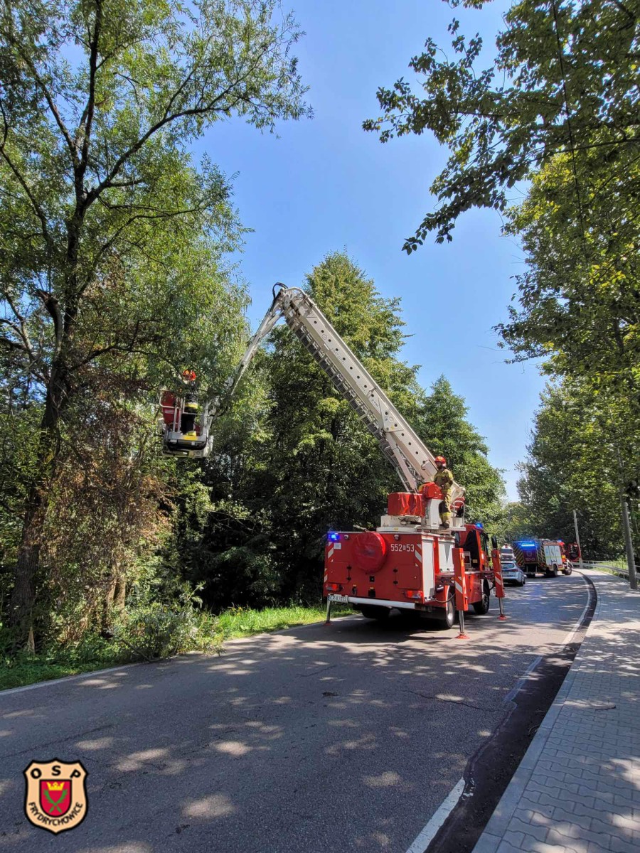 Do zdarzenia wyjechał zastęp GBA. Po dojeździe na miejsce potwierdzono treść zgłoszenia. Zabezpieczono miejsce, a po przyjeździe zastępów z JRG Andrychów usunięto zagrożenie z wykorzystaniem podnośnika.