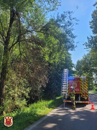 Informacja o zdarzeniu: Konar drzewa nad drogą powiatową stwarzający zagrożenie dla uczestników ruchu.