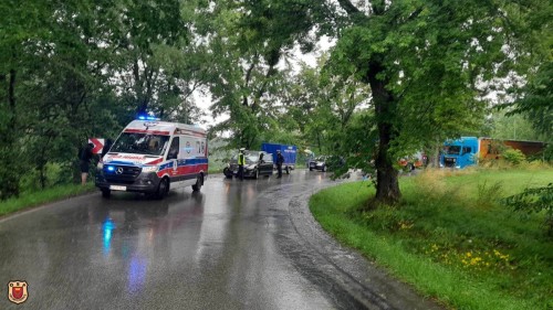 ℹ️ Informacja o zdarzeniu: Zderzenie dwóch samochodów osobowych, 1 osoba poszkodowana.