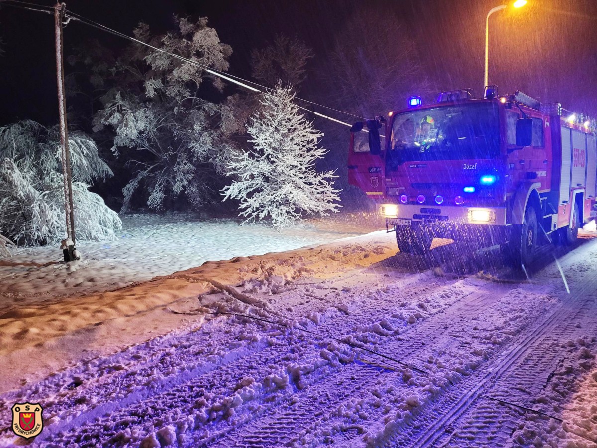 Wracając do remizy na wysokości posesji 45 zauważyliśmy zerwane przewody telekomunikacyjne, który zostały zabezpieczone.