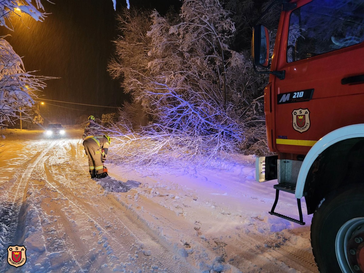 Przewrócone drzewo znajdowało na chodniku oraz jednym pasie drogi, zagrożenie zostało usunięte przy pomocy pilarki do drewna.