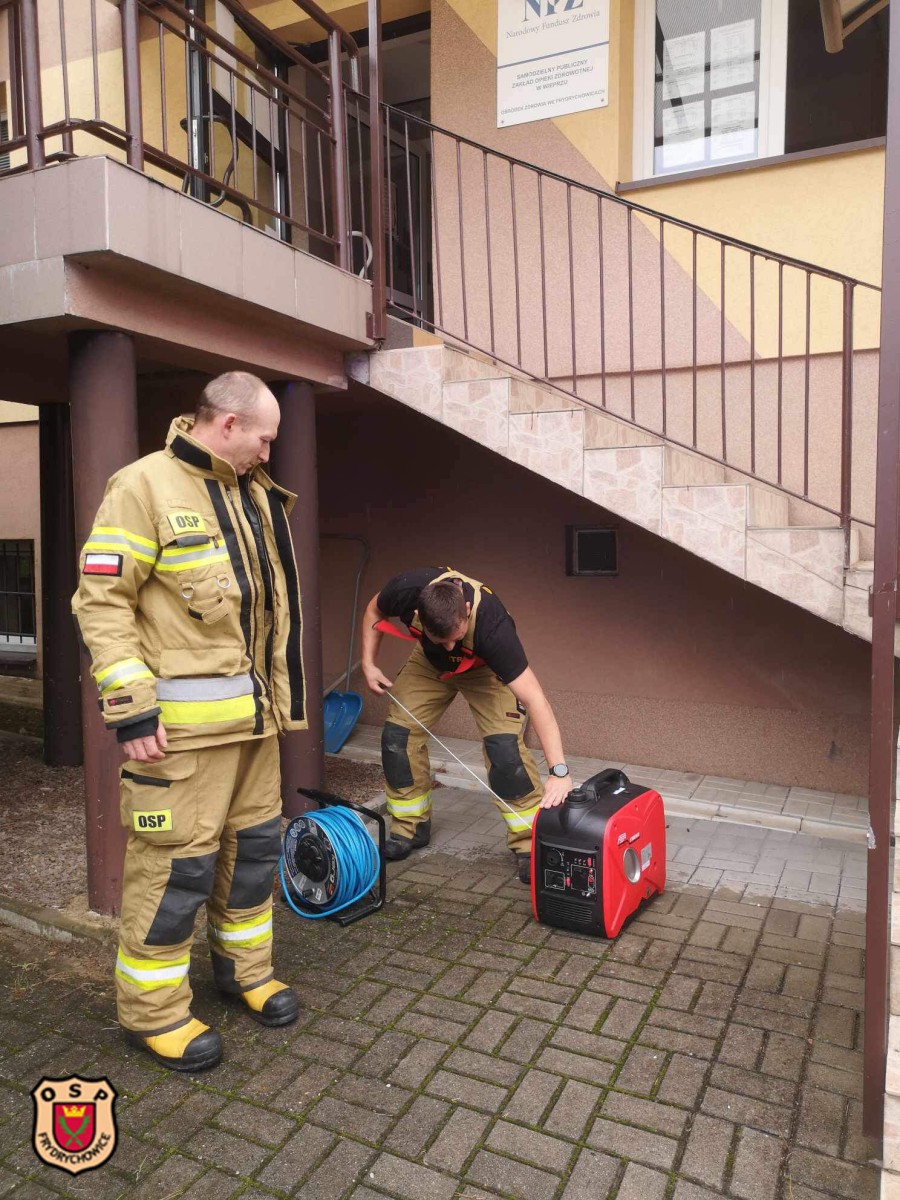 Dziś po sąsiedzku zostaliśmy poproszeni przez pracowników ośrodka zdrowia o pomoc i podłączenie zasilania do urządzeń elektrycznych w budynku. Powodem przerwy w zasilaniu była burza jaka przeszła przez powiat w godzinach popołudniowych.