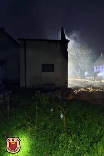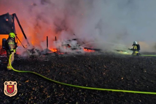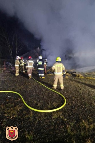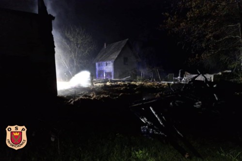 Do zdarzenia wyjechały dwa zastępy z naszej jednostki. Po dotarciu na miejsce zastano pożar budynku/stodoły przylegającej do budynku mieszkalnego.