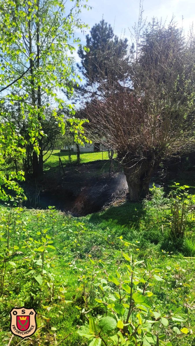 Informacja o zdarzeniu: W ziemi zapaliła się rura z gazem w wyniku pożaru traw.