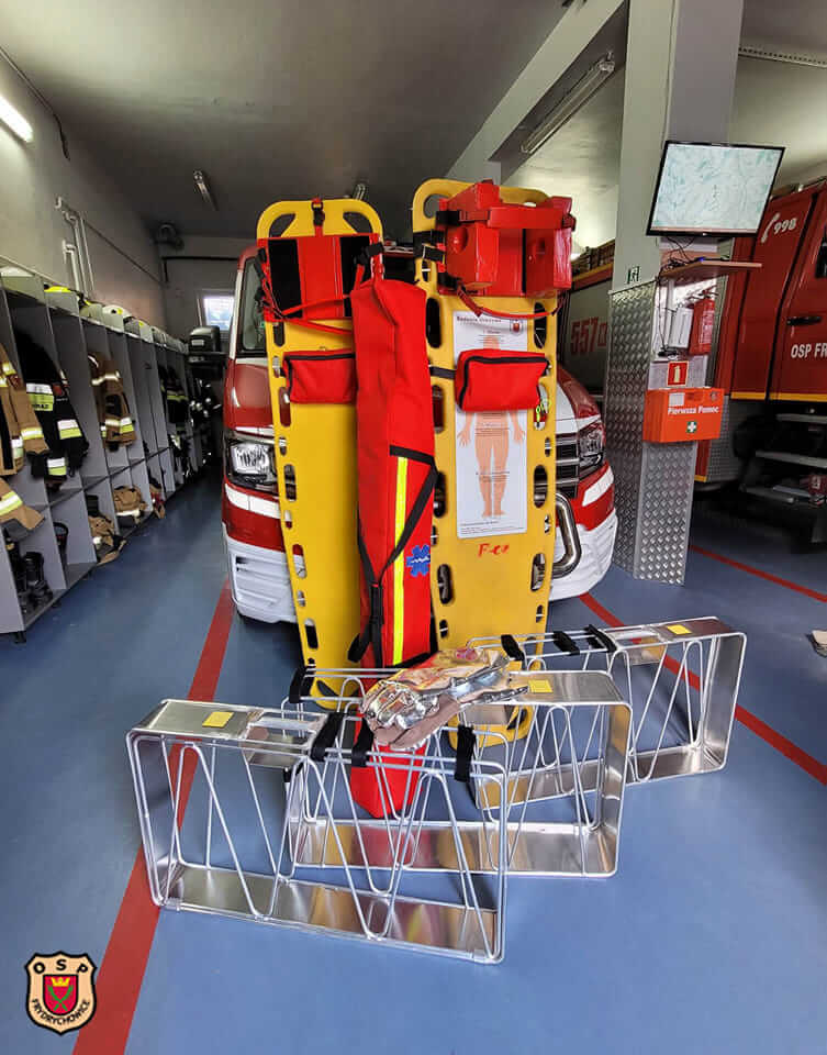 Zakup nowego sprzętu / Wydarzenia / Przez admin-ncK7shrp Kolejny sprzęt zakupiony ze środków własnych trafił do naszej remizy. Pokrowiec na pasy do deski ortopedycznej – 2szt Pokrowiec na szyny Kramera – 1szt Rękawice żaroodporne – 1szt Kaseton wężowy: W-75 -1szt Kaseton wezowy: W-52 – 2szt